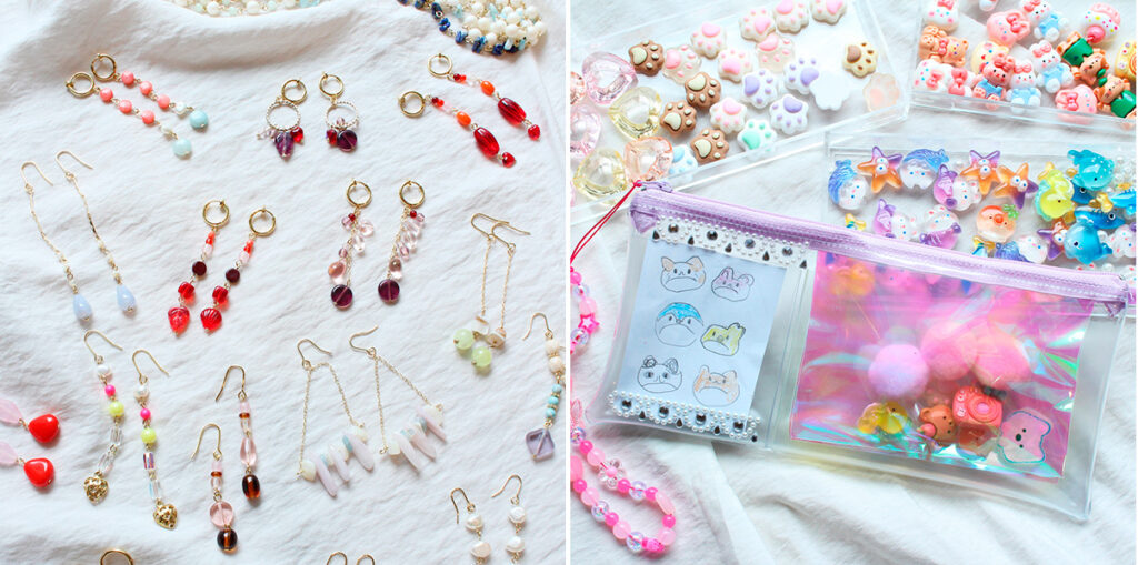 カラフルな天然石やガラスを使ったハンドメイドのアクセサリーを販売しています。
